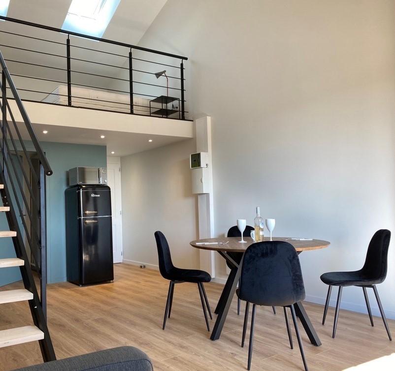 APPARTEMENT DUPLEX T2 RENOVE ET MEUBLE CONVENTIONNE - Au pied de la Collégiale, appartement duplex T2 rénové et équipé conventionnés ANAH dans cet immeuble ancien entièrement réhabilité, baigné de lumière et offrant une jolie vue sur le port. Location nue avec mise à disposition du mobilier.