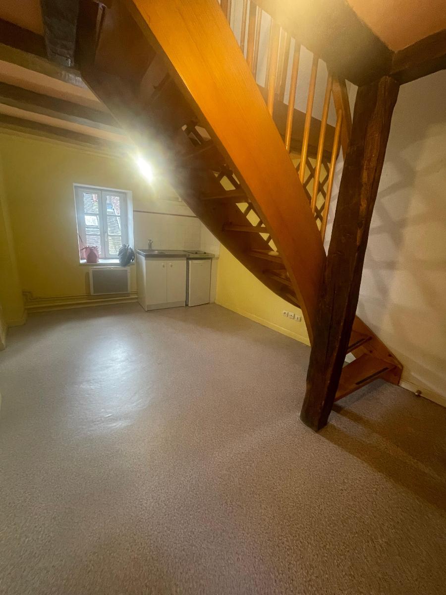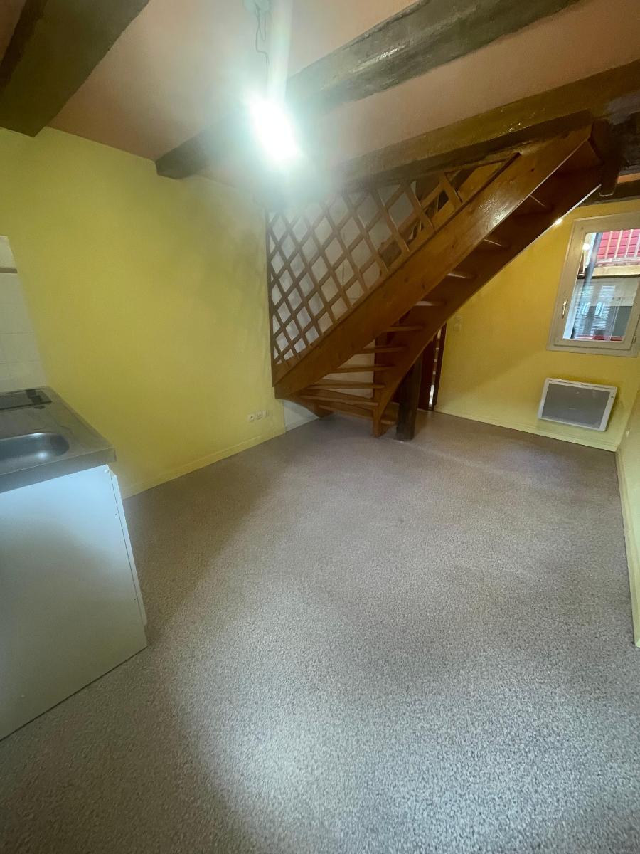 DUPLEX COEUR DE VILLE - Coeur de ville, idéal pour étudiant, appartement en duplex d'une superficie de 30.34 m² au deuxième étage d'un immeuble calme. Il comprend une pièce principale avec coin cuisine équipé (plaques, réfrigérateur).